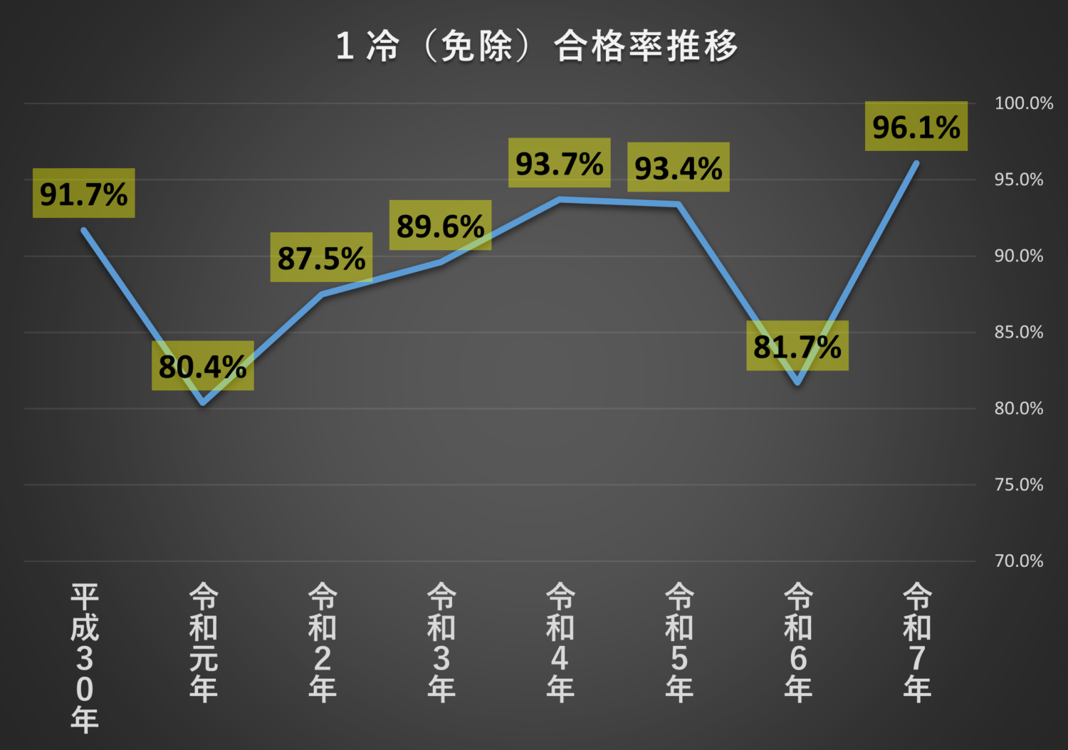 合格率推移(グラフ)【第一種冷凍機械責任者-科目免除】