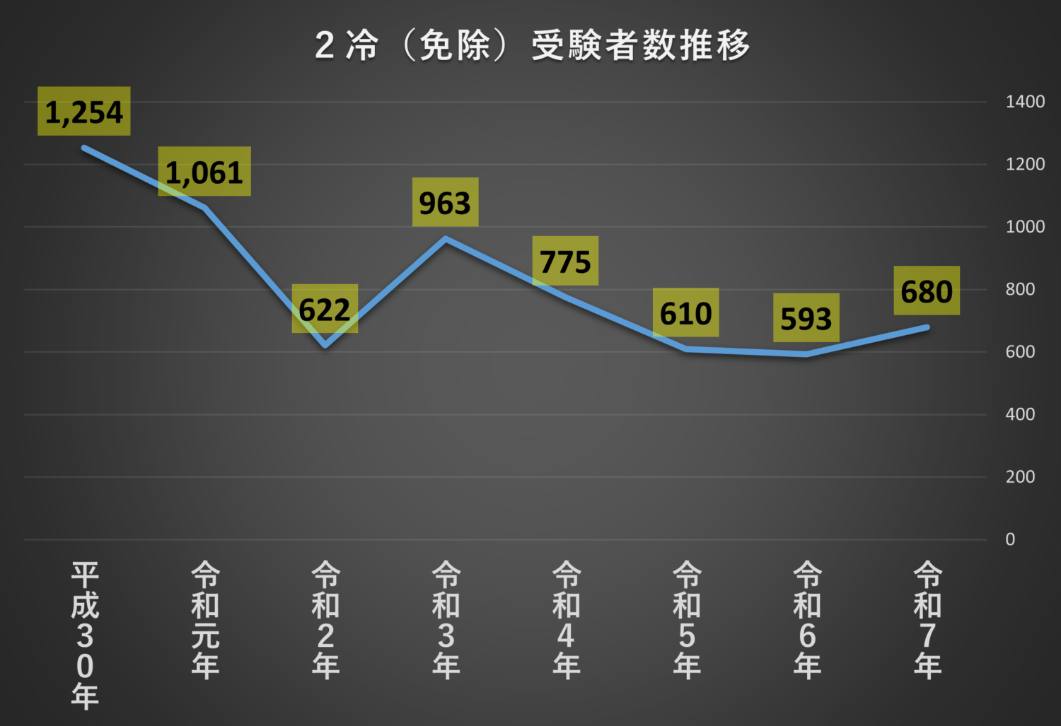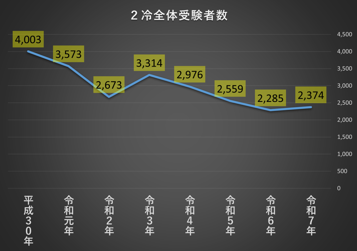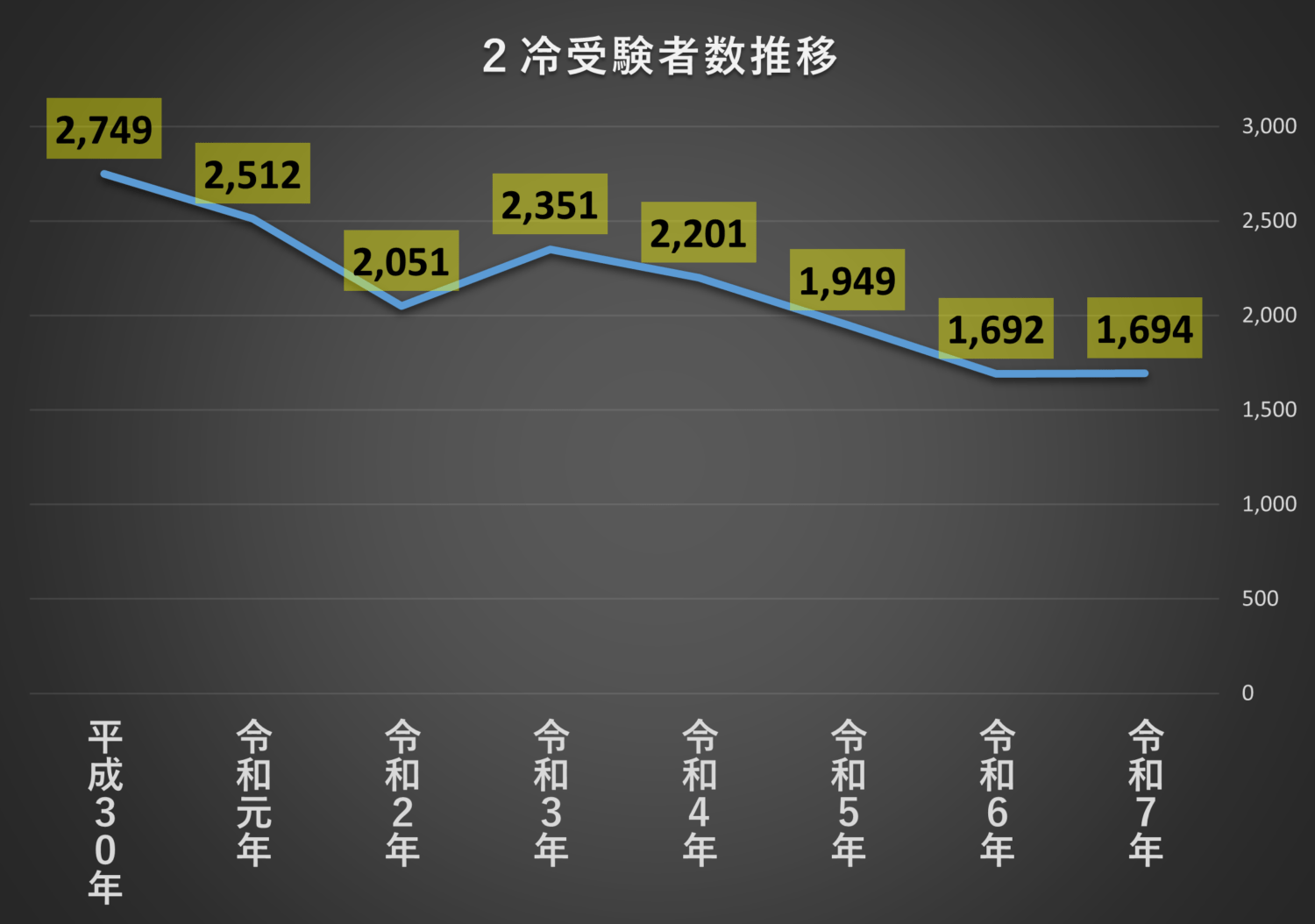 そもそも2冷の本試験受験者も減少していましたので、今後はもっと減っていくと思われます。