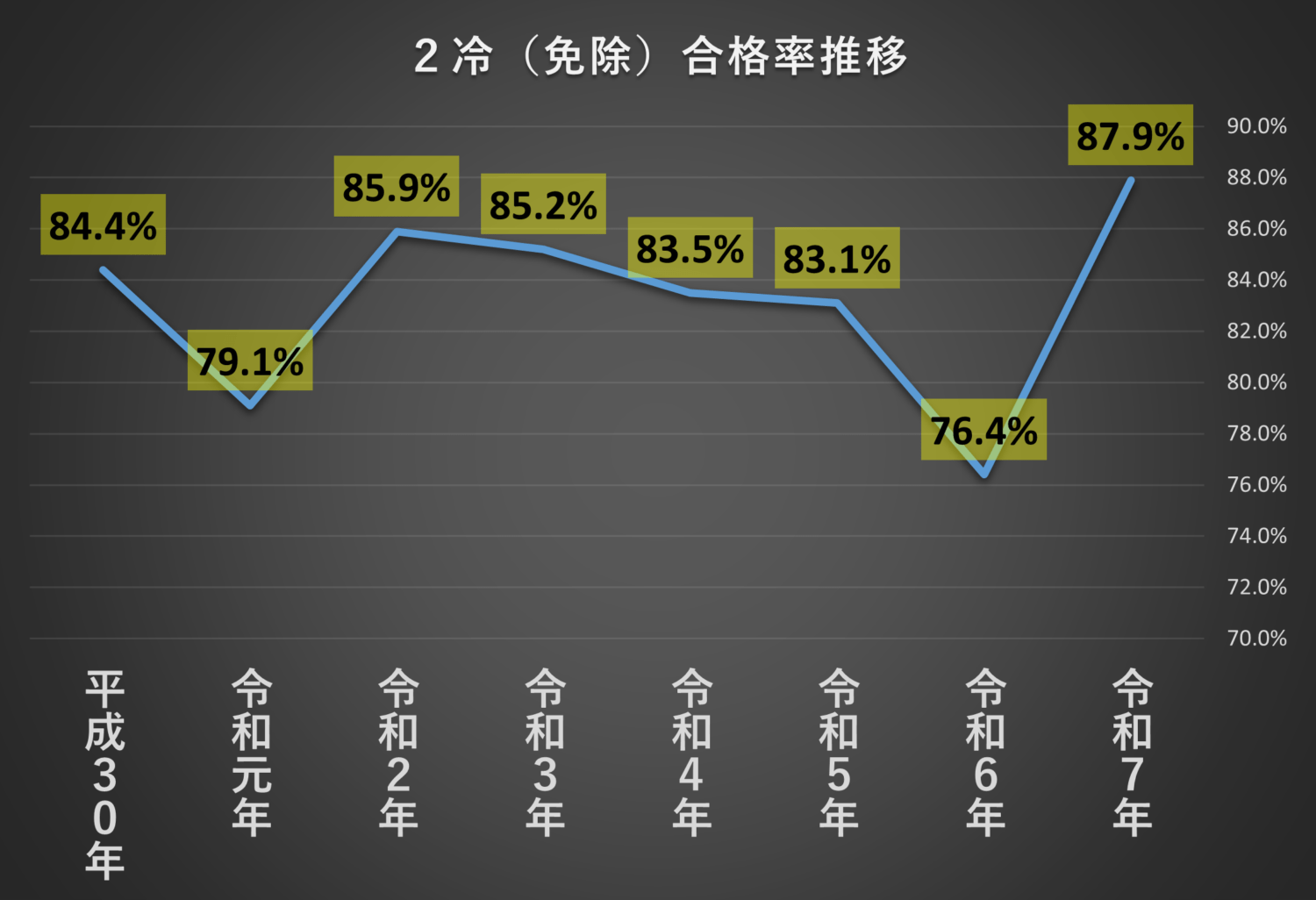 2冷は概ね30%前後の合格率となっており、そこまで難しい試験ではないことがわかります。