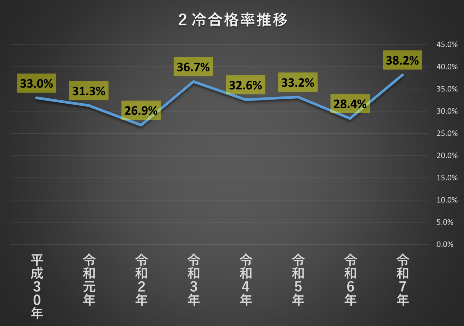 平成30年度から最新の試験までの合格率をグラフにしました。