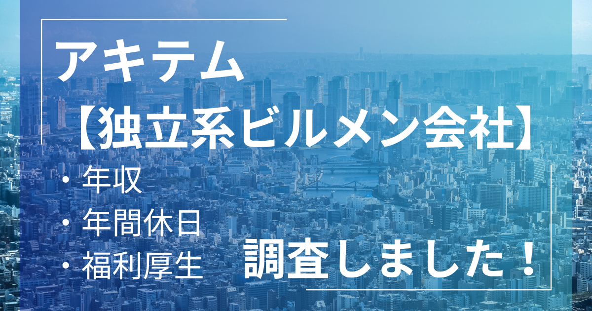 この記事では独立系ビルメン会社のアキテムについて企業情報やクチコミを調査したので紹介します。