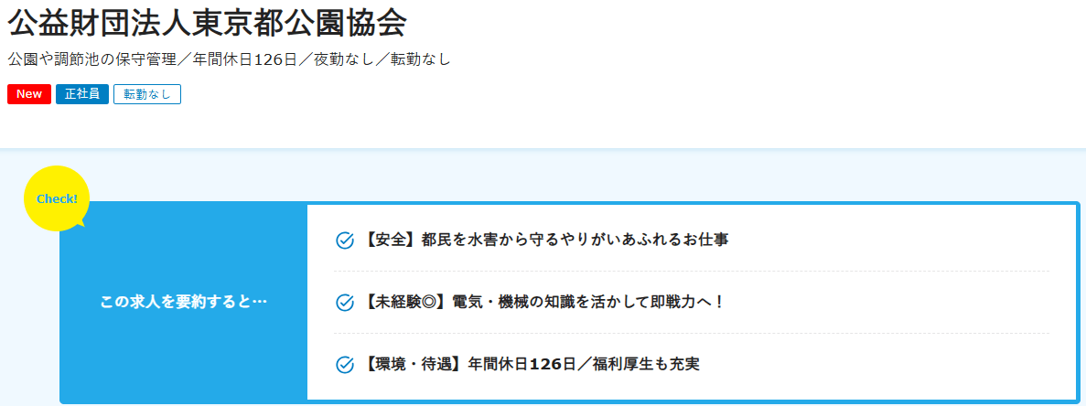まずはdodaに掲載されていた「公益財団法人東京都公園協会」のデータから紹介します。