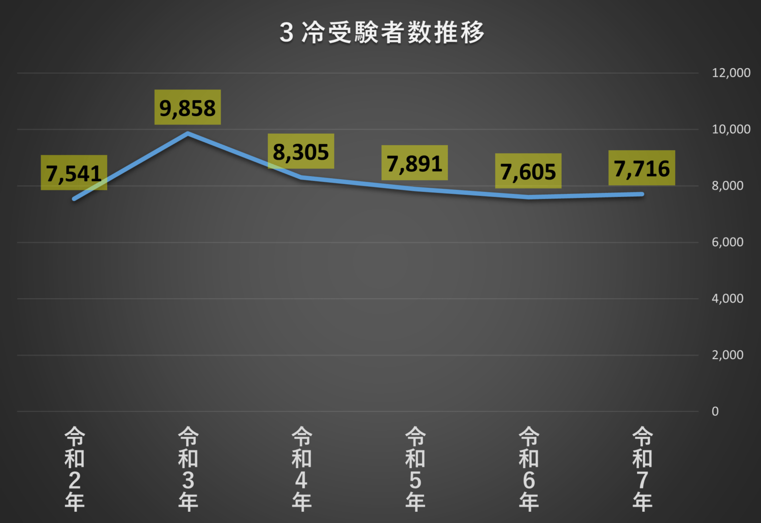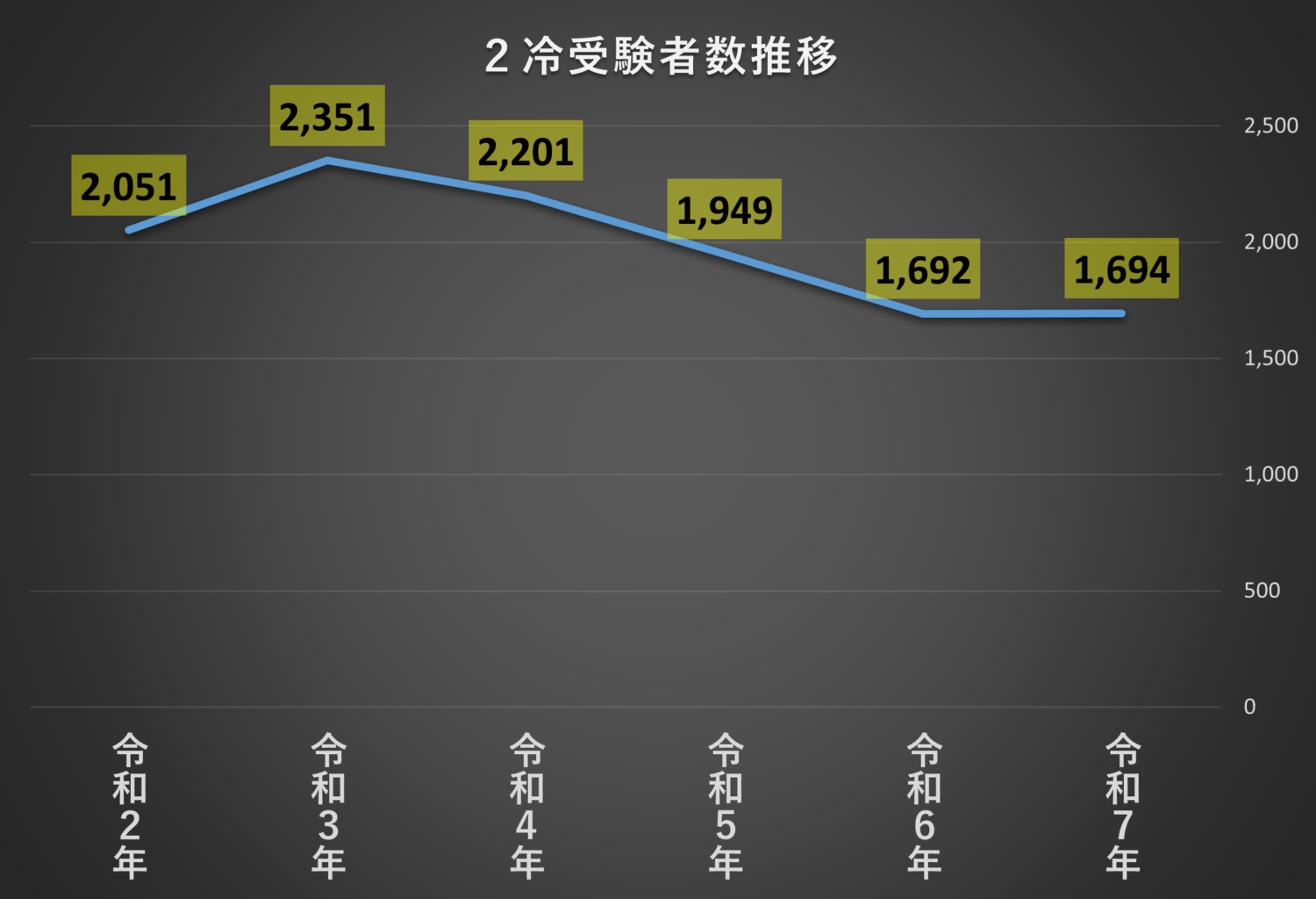 前回よりも微増とはいえ、冷凍機の受験者は減少傾向にあります。