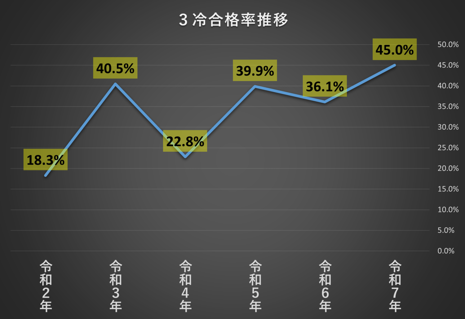 とはいえ、令和2年の18.3%みたいに地獄のような回もあるので油断できない試験です・・。